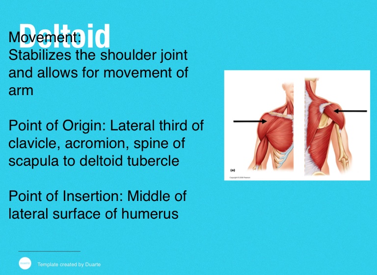 Point of Origin: Lateral third of clavicle, acromion, spine of scapula to deltoid tubercle