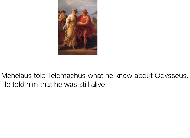 Menelaus told Telemachus what he knew about Odysseus. He told him that he was still alive.