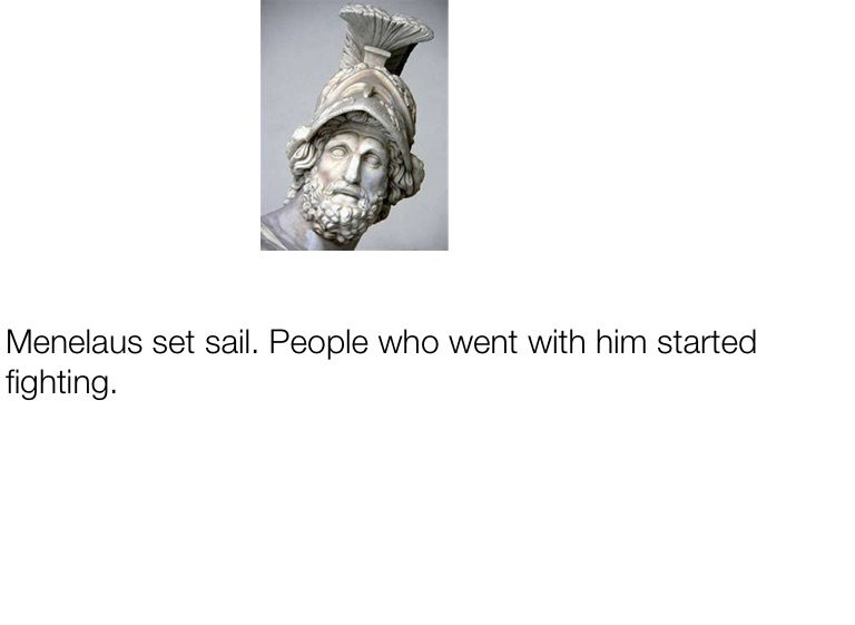 Menelaus set sail. People who went with him started fighting.