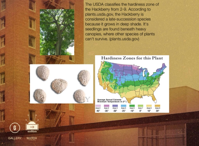 The USDA classifies the hardiness zone of the Hackberry from 2-9. According to plants.usda.gov, the Hackberry is considered a late-succession species because it grows in deep shade. It's seedlings are found beneath heavy canopies, where other species of plants can't survive. (plants.usda.gov)
