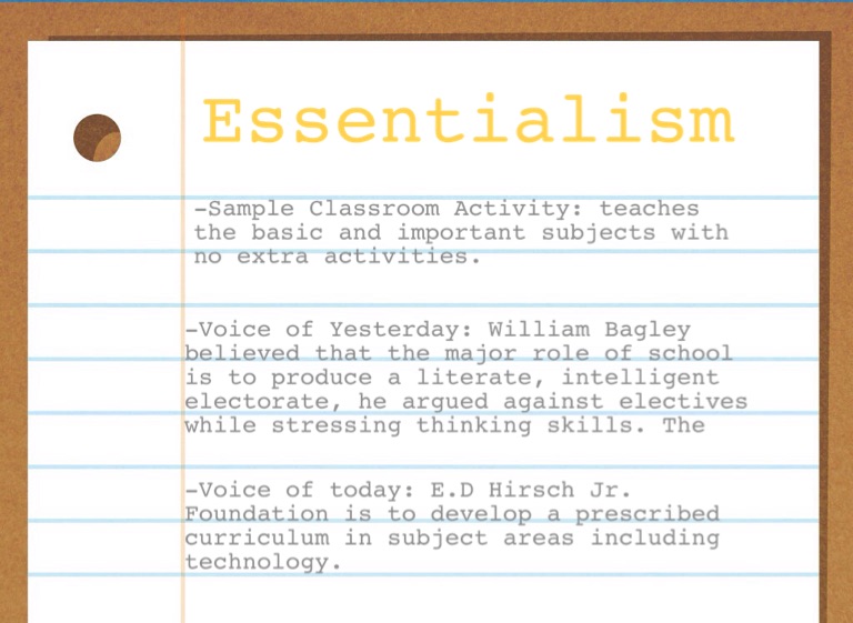 -Voice of Yesterday: William Bagley believed that the major role of school is to produce a literate, intelligent electorate, he argued against electives while stressing thinking skills. The