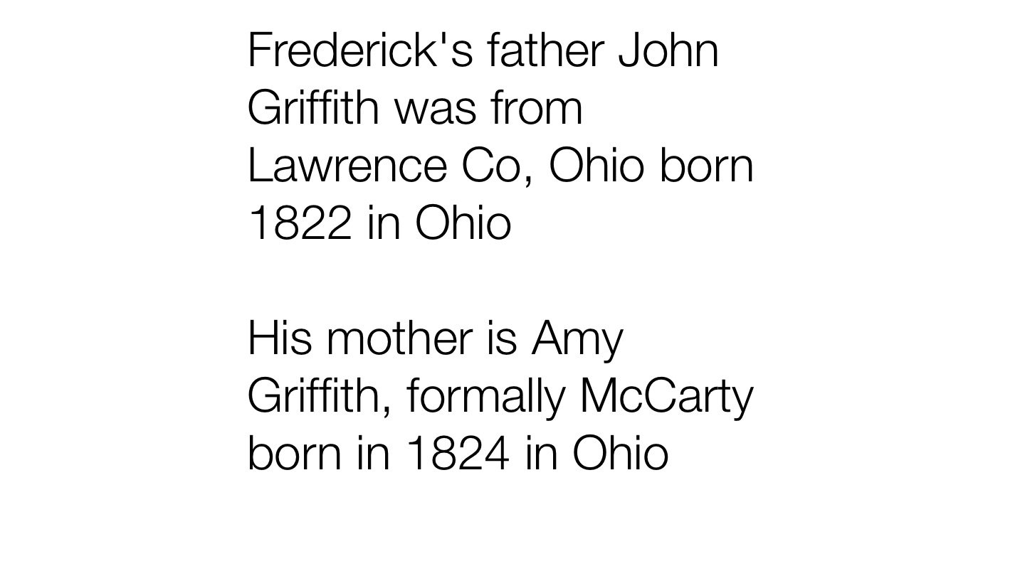 Frederick's father John Griffith was from Lawrence Co, Ohio born 1822 in Ohio