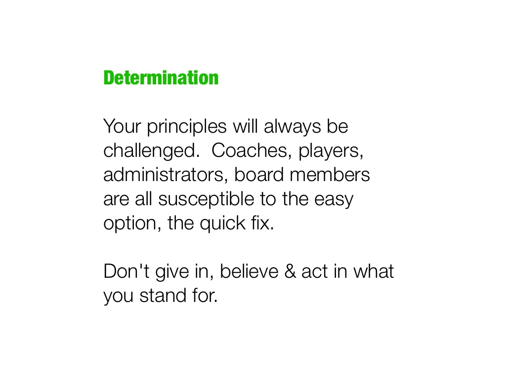 Your principles will always be challenged. Coaches, players, administrators, board members are all susceptible to the easy option, the quick fix.