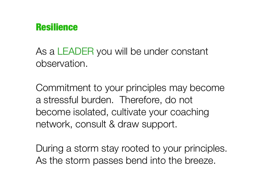 Commitment to your principles may become a stressful burden. Therefore, do not become isolated, cultivate your coaching network, consult & draw support.