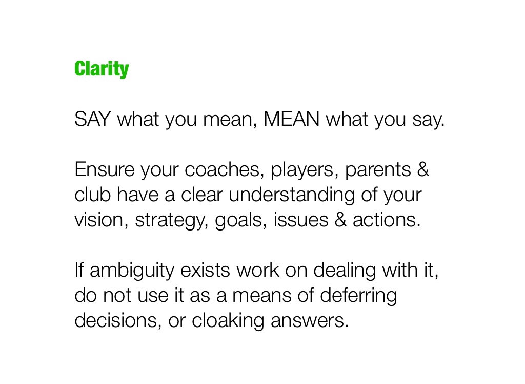 Ensure your coaches, players, parents & club have a clear understanding of your vision, strategy, goals, issues & actions.