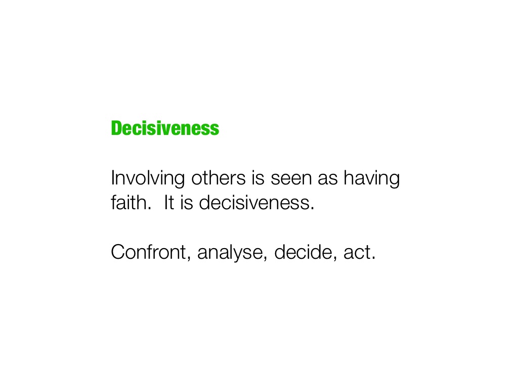 Involving others is seen as having faith. It is decisiveness.