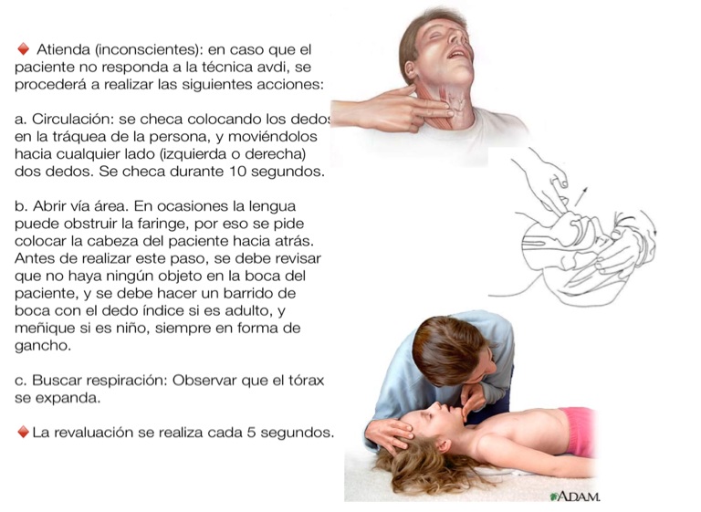 ♦️ Atienda (inconscientes): en caso que el paciente no responda a la técnica avdi, se procederá a realizar las siguientes acciones: