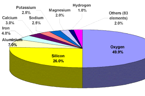 The part of the earth that is crust is made up of silicon (32%), oxygen (30%), iron (15%), magnesium (14%), sulfur (3%), nickel (2%), and si02. With trace amounts of calcium and aluminum.