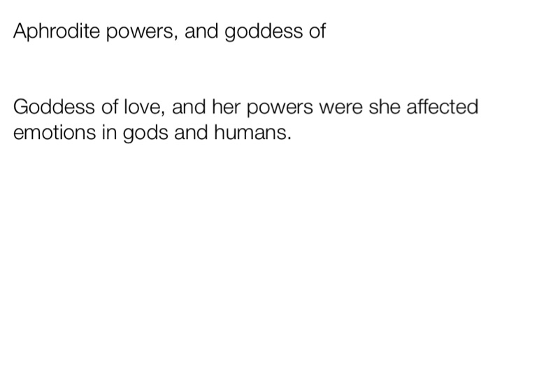 Goddess of love, and her powers were she affected emotions in gods and humans.