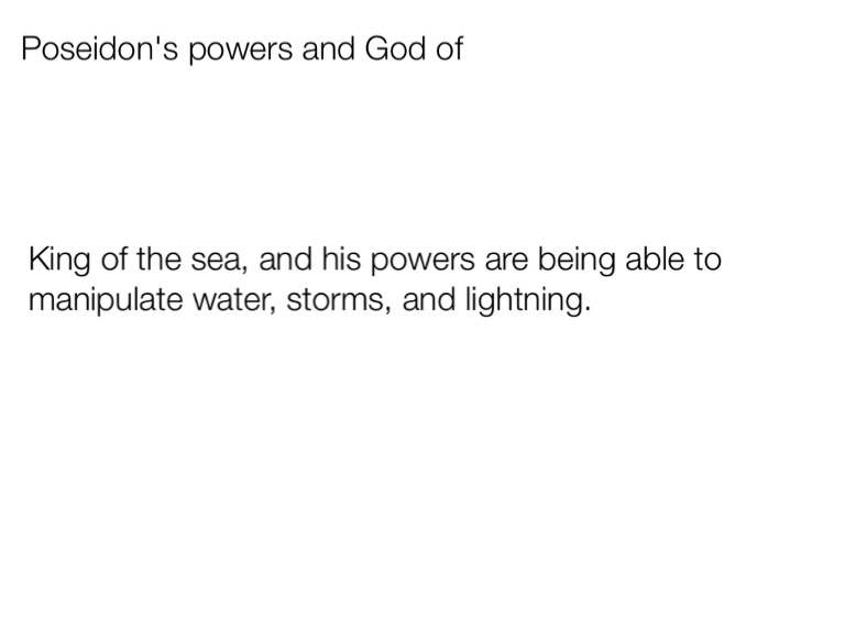King of the sea, and his powers are being able to manipulate water, storms, and lightning.
