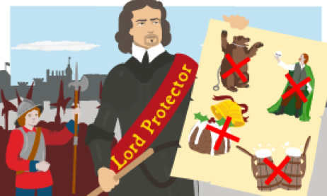 Cromwell abolished the monarchy and created a republican commonwealth. He also abolished arts, sports, and recreation.