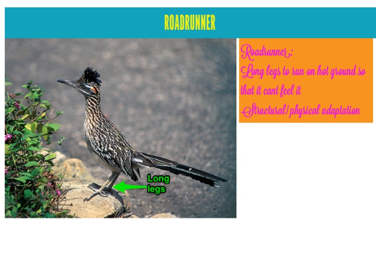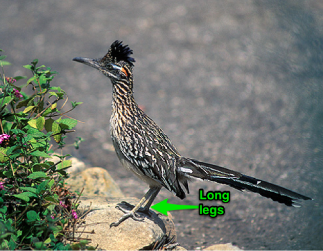 Long legs to run on hot ground so that it cant feel it