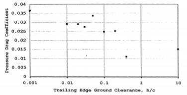 Figure 7 : Graph showing pressure drag coefficient against ground clearance