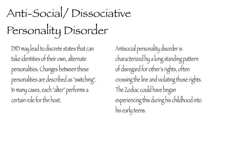 Anti-Social/ Dissociative Personality Disorder
