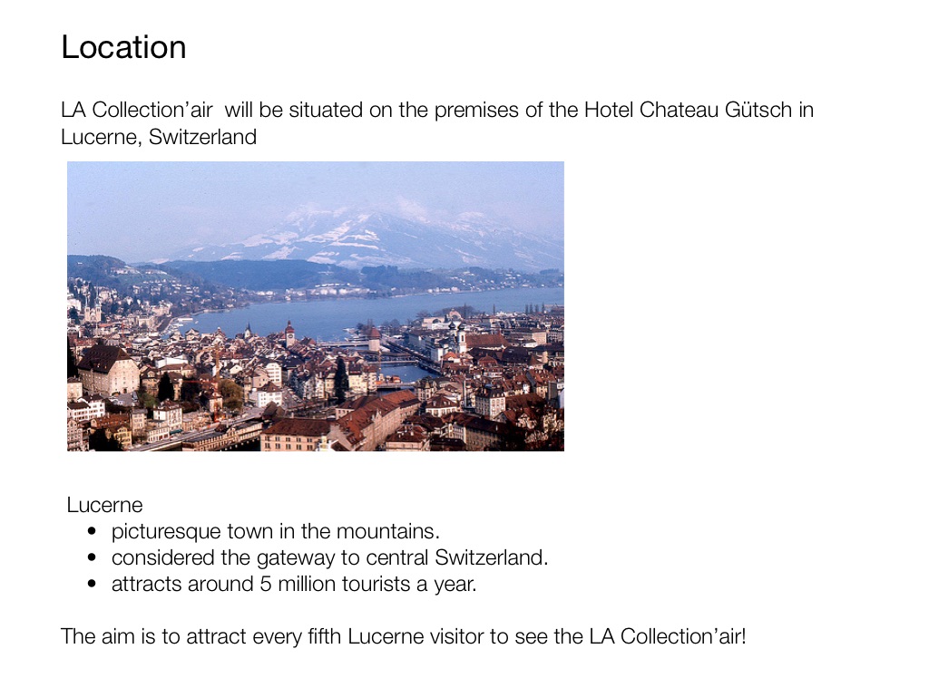 LA Collection’air will be situated on the premises of the Hotel Chateau Gütsch in Lucerne, Switzerland