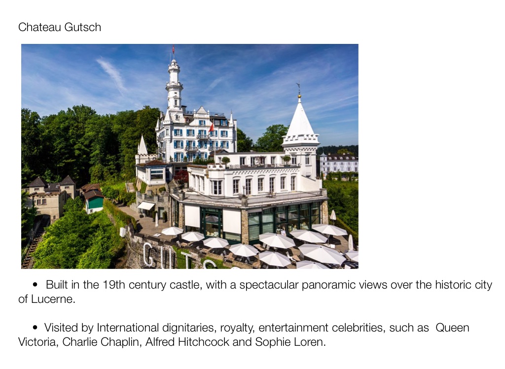 • Built in the 19th century castle, with a spectacular panoramic views over the historic city of Lucerne.