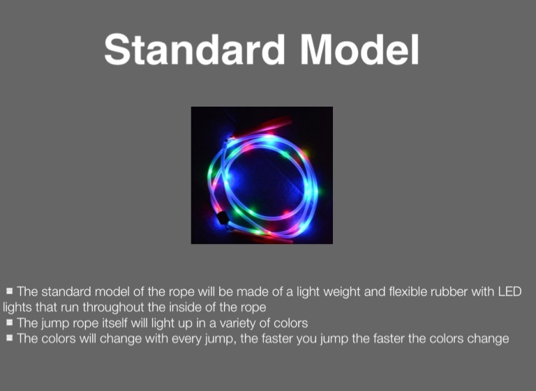 ▫️The standard model of the rope will be made of a light weight and flexible rubber with LED lights that run throughout the inside of the rope