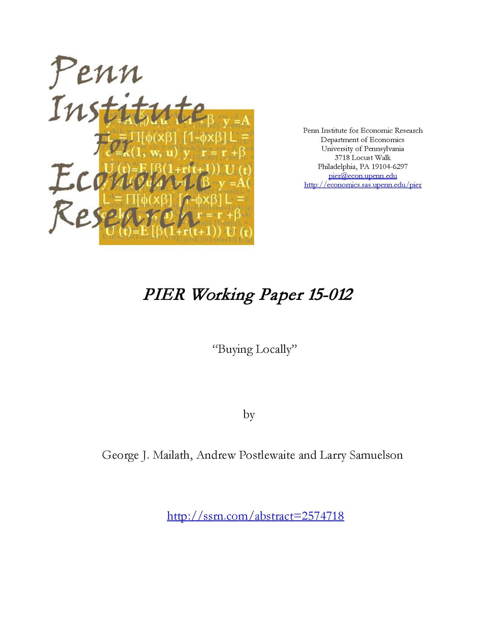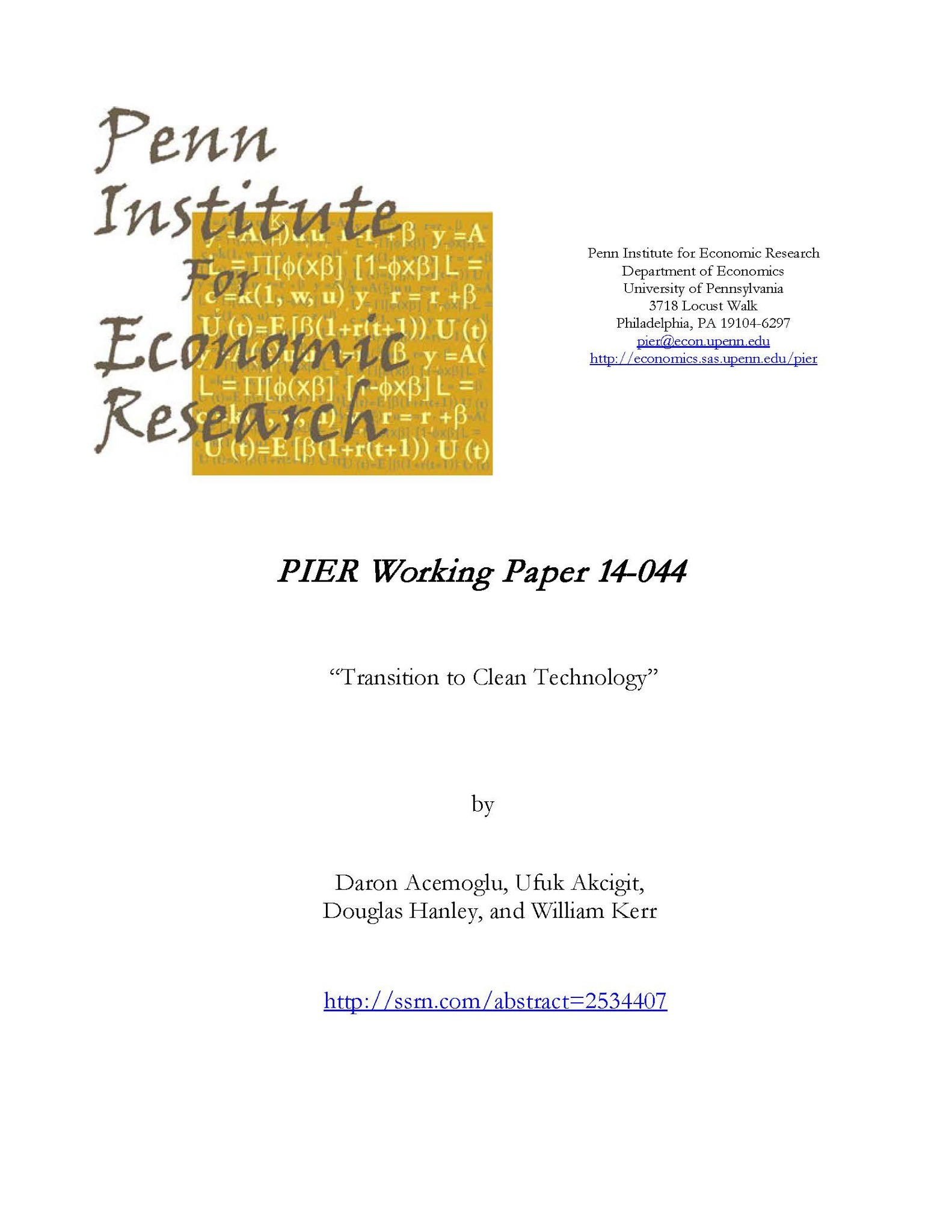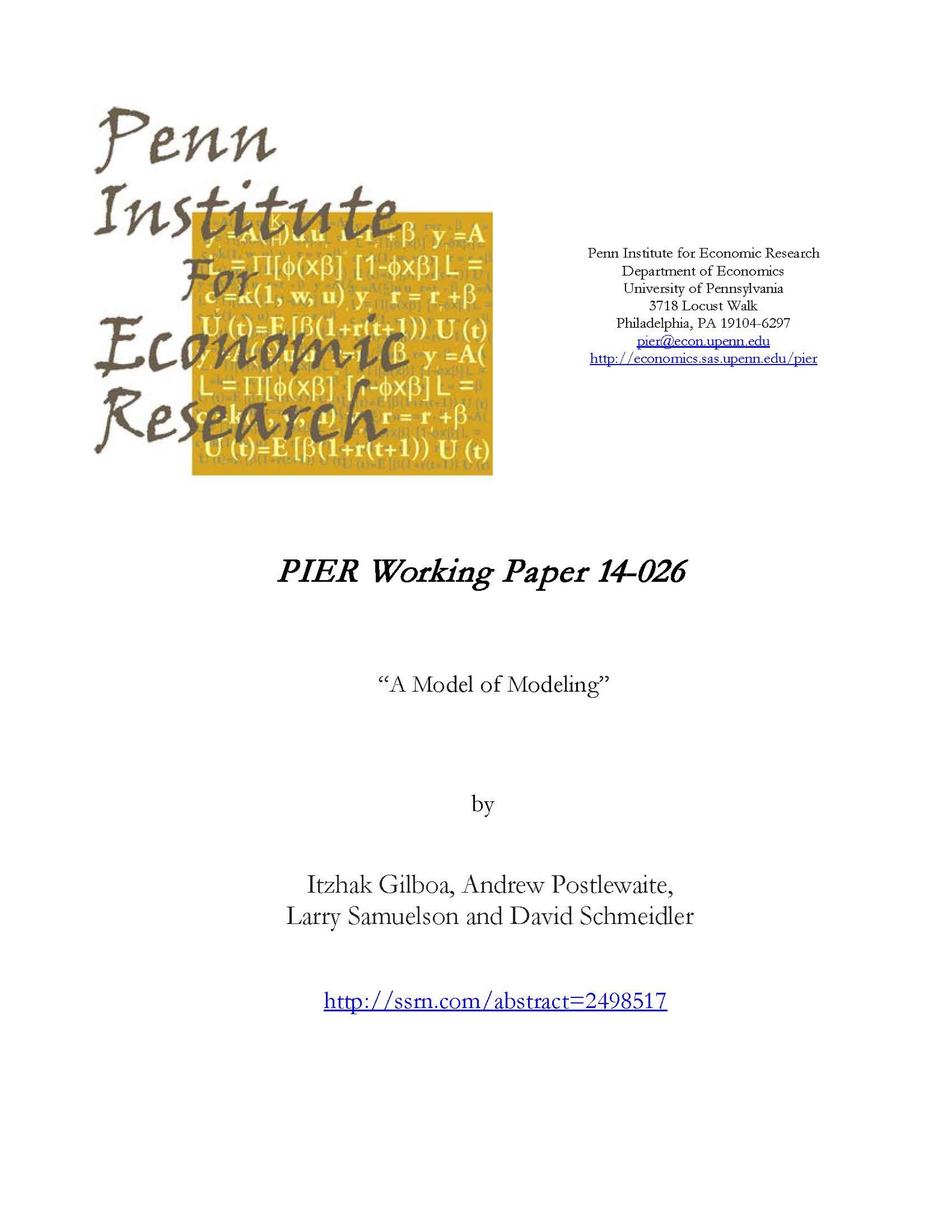 PIER supports faculty and students in advancing the science of economics and providing a forum for the exchange of ideas and research. PIER sponsors research programs, brings in distinguished visiting lecturers, and publishes findings through its working paper series—all efforts which have helped solidify Penn’s role as one of the leading institutions in the world for the study of economics.