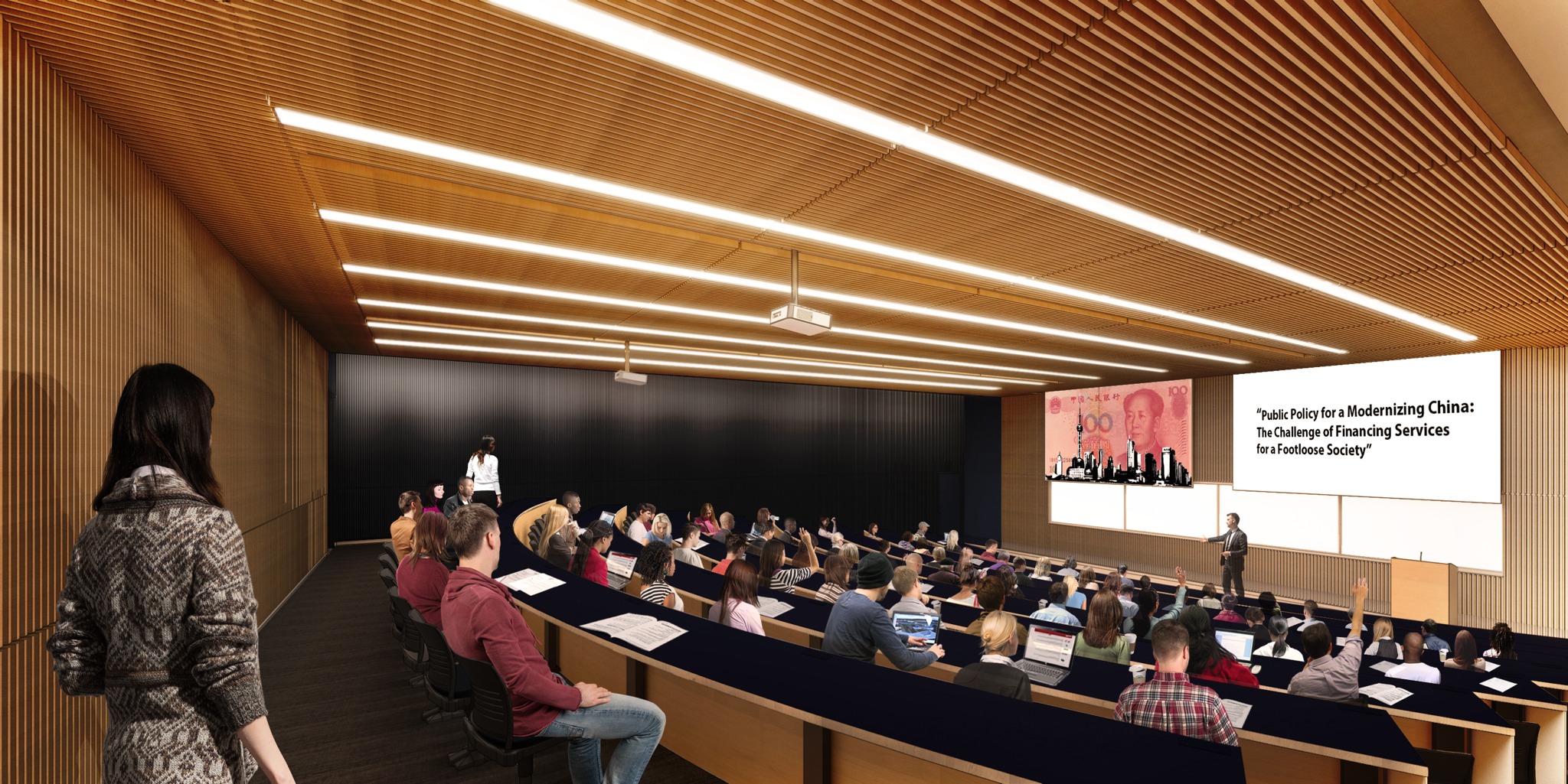The Perelman Center is envisioned as a campus nexus where distinguished researchers will bring interdisciplinary scholarly expertise to bear on contemporary issues through public events, academic seminars and conferences, and programs for the student community, held in the 120-seat Auditorium on the ground floor.