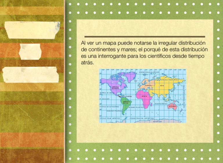 Al ver un mapa puede notarse la irregular distribución de continentes y mares; el porqué de esta distribución es una interrogante para los científicos desde tiempo atrás.