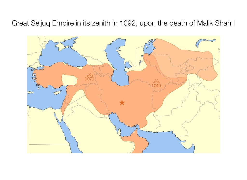 Great Seljuq Empire in its zenith in 1092, upon the death of Malik Shah I