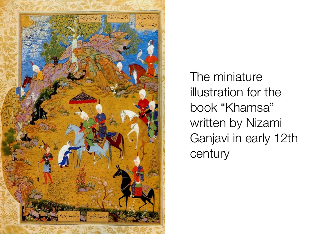 The miniature illustration for the book “Khamsa” written by Nizami Ganjavi in early 12th century