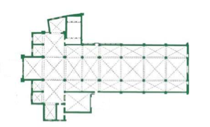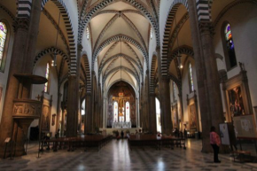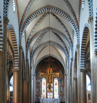 Questa Chiesa ha un abside piatta e cappelle rettangolari nel transetto,pilastri alti e snelli ed impianto a sala. Gli archi sono policromi ( bianchie neri). Le prime campate sono più ampie e quadrate, verso l’abside tendono ad essere più rettangolari.