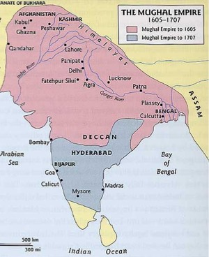 Zahir al-Din Muhammad, known as Babur, was a Chagatai Turk that claimed to be a descendent of Genghis Khan. He conquered India, and took the city of Delhi, but cared little for his new found land. Many in his group wanted to claim the spoils of war and leave, but Babur decided to stay and establish the Mughal Empire. His grandson, Akbar, took absolute control of the government and transformed the empire into a state with tight, centralized control. He did not tolerate challenges to his power, and was strong but also inteligent. He put in place a policy of religious tolerance and was interested in philosophy. Later, under the reign of Aurangzeb, the Mughal Empire reached its height. Aurangzeb waged several campaigns to push his authority deeper into southern India, and greatly expanded his empire. During his reign, there were many rebellions because he did away with the policy of religious tolerance and tried to force his subjects to convert to Islam.