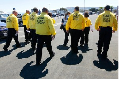 The cell membrane controls what enters and exits the cell and security controls what enters and exits the stadium.