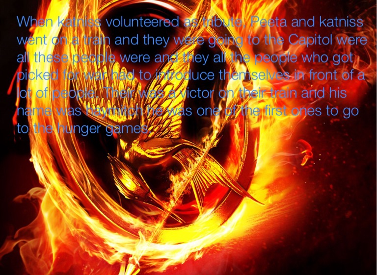 When katniss volunteered as tribute, Peeta and katniss went on a train and they were going to the Capitol were all these people were and they all the people who got picked for war had to introduce themselves in front of a lot of people. Their was a victor on their train and his name was haymitch he was one of the first ones to go to the hunger games.