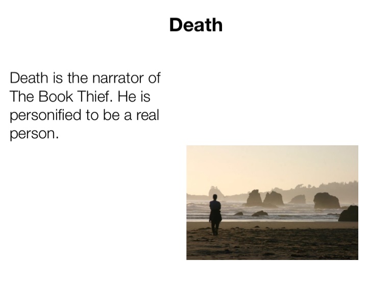 Death is the narrator of The Book Thief. He is personified to be a real person.