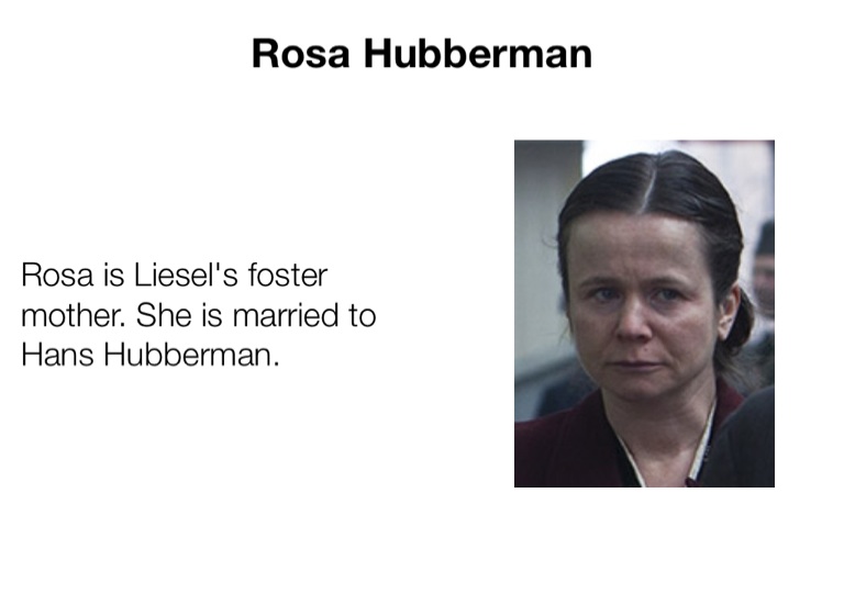 Rosa is Liesel's foster mother. She is married to Hans Hubberman.