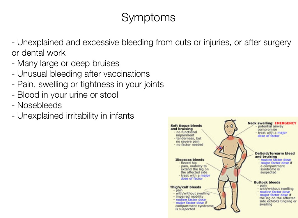 - Unexplained and excessive bleeding from cuts or injuries, or after surgery or dental work