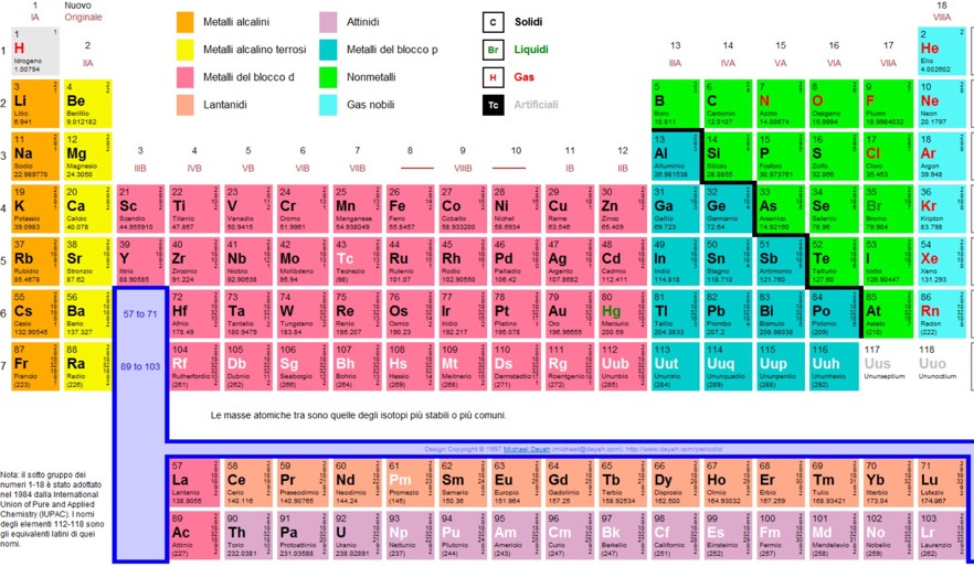 Tutti gli elementi chimici sono raccolti in una tabella chiamata tavola periodica degli elementi. Gli elementi sono disposti in un ordine che dipende dalle loro caratteristiche e dalla loro massa.