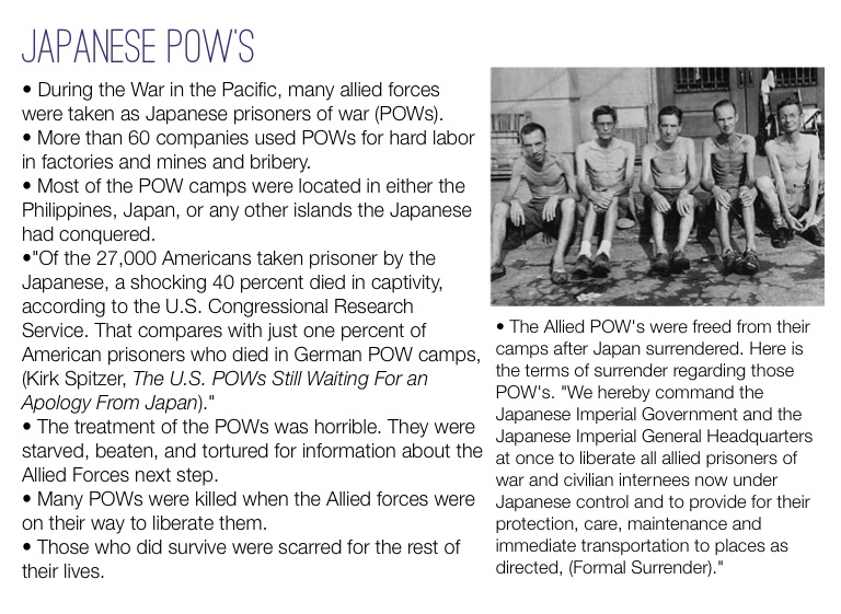 • During the War in the Pacific, many allied forces were taken as Japanese prisoners of war (POWs).