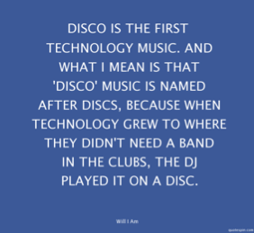 The name disco originally comes from night clubs in France. It is a place that played music without live bands.