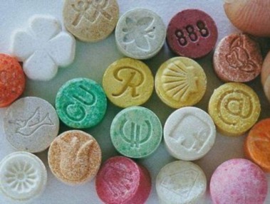 Ecstasy pills come in a variety of colors and logos. These can range from stars, crowns, happy faces and random letters. Comes in powder, capsule or liquid form.