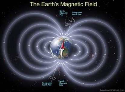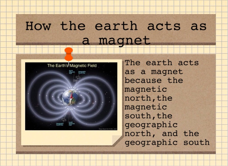 The earth acts as a magnet because the magnetic north,the magnetic south,the geographic north, and the geographic south