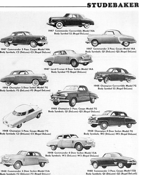 •Delivery trucks, commanders(sedan, convertible), 2-door sedans, Hardtops, Pickup trucks, Police cars, 4-door station wagons, & cruisers.