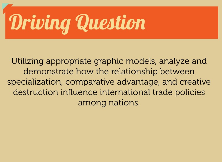Utilizing appropriate graphic models, analyze and demonstrate how the relationship between specialization, comparative advantage, and creative destruction influence international trade policies among nations.