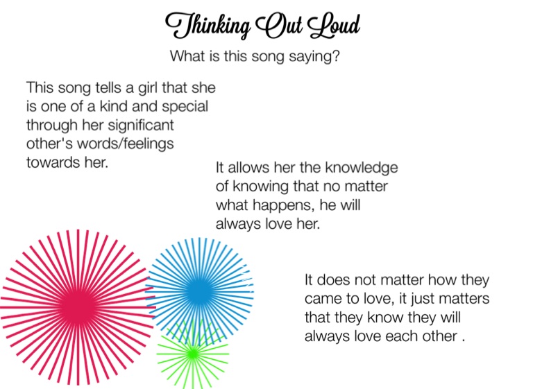 This song tells a girl that she is one of a kind and special through her significant other's words/feelings towards her.
