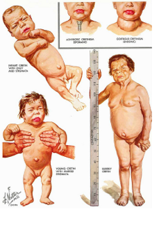 -can happen to newborns if mother does not supply enough thyroid hormone (cretinism)