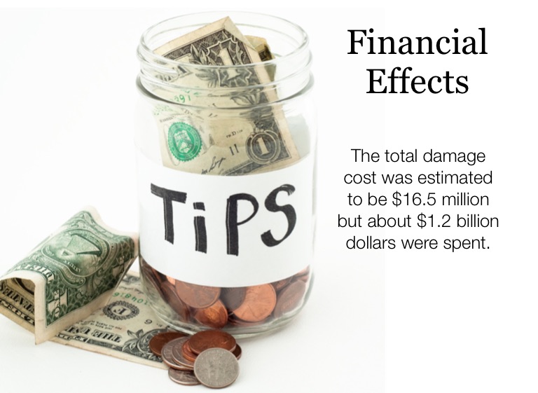 The total damage cost was estimated to be $16.5 million but about $1.2 billion dollars were spent.