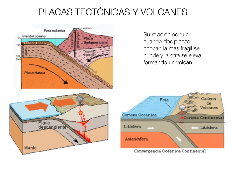 Su relación es que cuando dos placas chocan la mas fragil se hunde y la otra se eleva formando un volcan.