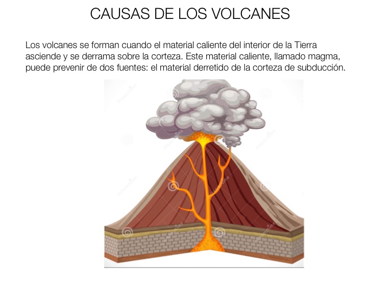 Los volcanes se forman cuando el material caliente del interior de la Tierra asciende y se derrama sobre la corteza. Este material caliente, llamado magma, puede prevenir de dos fuentes: el material derretido de la corteza de subducción.