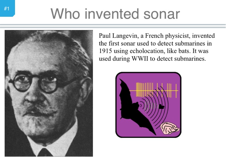 Paul Langevin, a French physicist, invented the first sonar used to detect submarines in 1915 using echolocation, like bats. It was used during WWII to detect submarines.