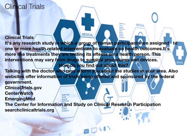 Talking with the doctor who may inform you about the studies in your area. Also websites offer information of trials being offered and sponsored by the federal government.