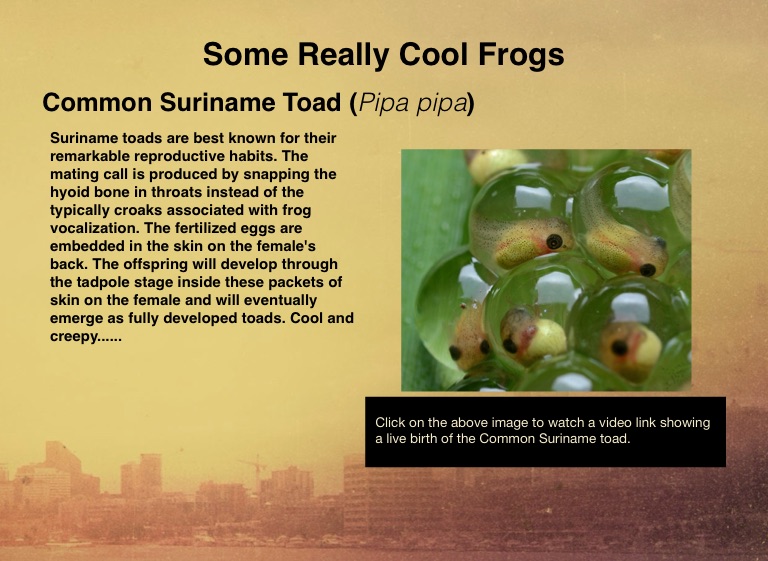 Click on the above image to watch a video link showing a live birth of the Common Suriname toad.