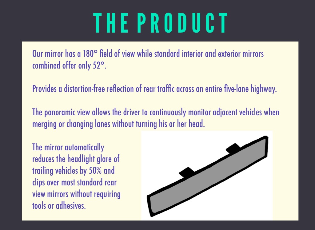 Our mirror has a 180° field of view while standard interior and exterior mirrors combined offer only 52°.