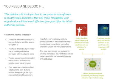 Slidedoc (n.) a visual document, developed in presentation software, that is intended to be read and referenced instead of projected